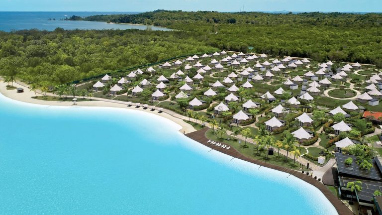 Kolam renang air asin buatan terbesar di Asia Tenggara. Airnya berwarna biru toska kristal dan sangat luas (6,3 hektar), sehingga kamu bisa bermain kano dan paddle board di dalamnya.